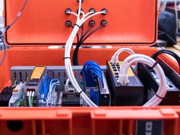 Our standard cabinet offerings are an 8-port switch, digital IO controls to interface field devices, and a networking hub for the Gocators.
